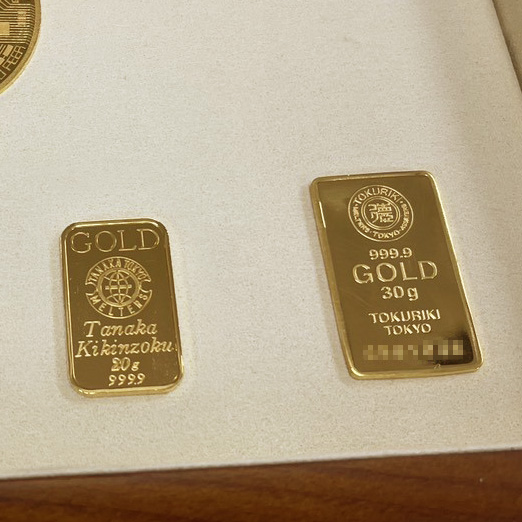 純金インゴット田中貴金属ゴールドバー、コイン金貨、徳力本店ゴールドバー保証書付き送料無料