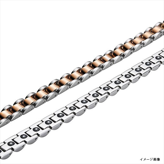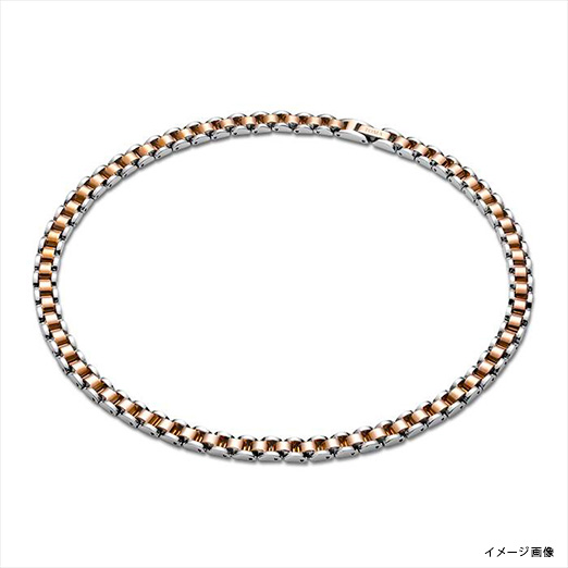 シルバー×ピンクゴールド、ネックレスブレスレット全体がチタン素材で作られており、軽量で体への負担が軽減されているのが特徴です。何よりも肌にアレルギー反応を起こさず、安心して装着できる。贈り物として適しています。